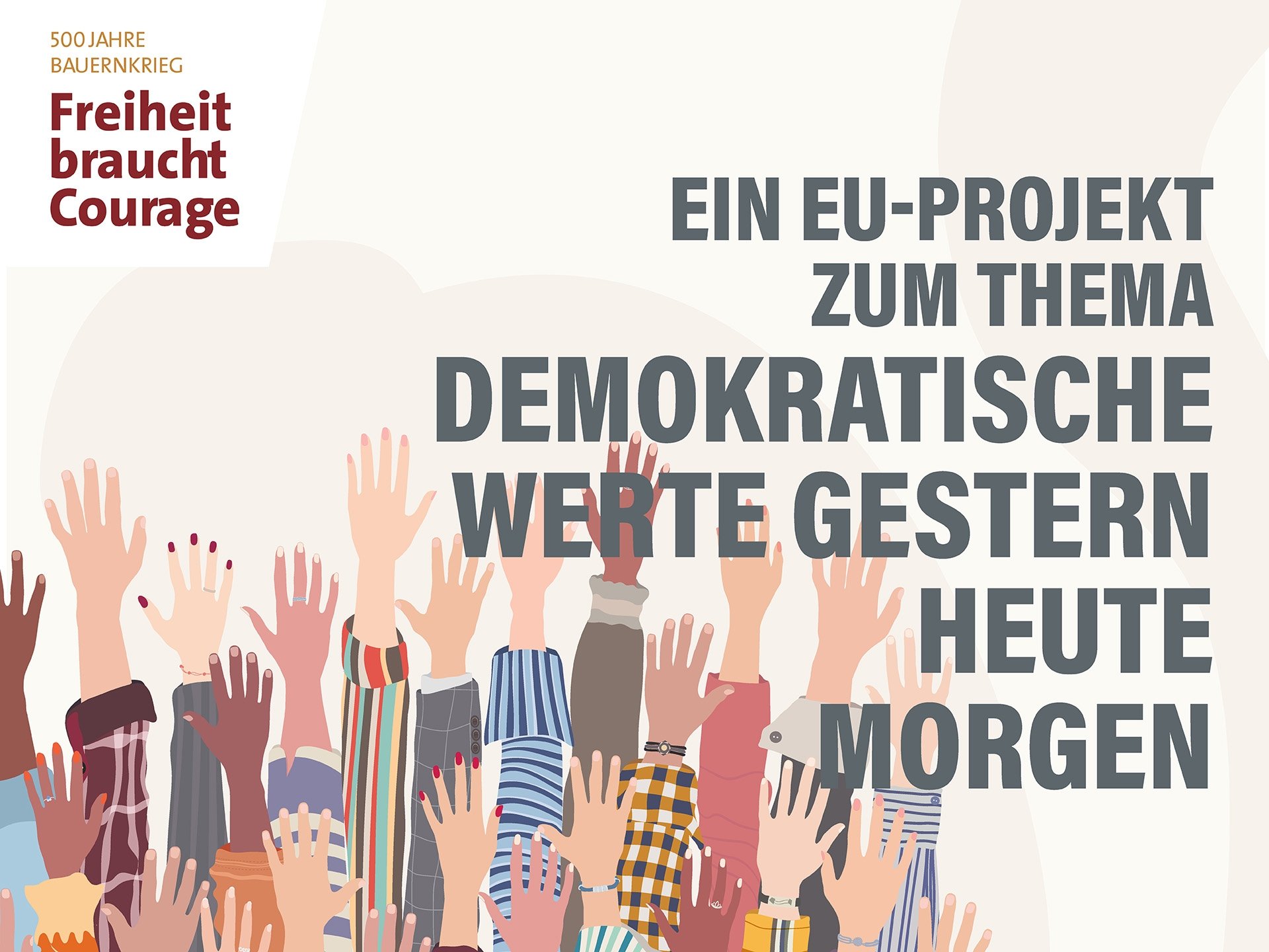 Der Bauernkrieg war ein Meilenstein im Kampf für Freiheitsrechte in Europa. Das Projekt nutzt das 500-Jahre-Gedenken zu diesem Ereignis, um den grenzüberschreitenden Kulturraum von Oberschwaben über das Allgäu bis Vorarlberg und das im-materielle Kulturerbe im Streben nach demokratischen Werten sichtbar zu machen. Bürger:innen in den beteiligten Gemeinden und Regionen sollen durch Erinnerungsorte, Veranstaltungen, kreative Aktionen, ein touristisches Angebot und Wissensvermittlung motiviert werden, sich an demokratischen Prozessen zu beteiligen.